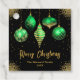 Add a touch of festive sophistication to your holiday party favors with this elegant Christmas tag featuring five green and gold ornaments against a sparkling black background. Perfect for tying onto treat bags, gift boxes, or table settings, this customizable tag includes space for your family name and year. A stylish way to personalize your celebration and impress your guests.