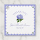 Ces étiquettes de remerciement carrées présentent une hydrangea bleue peinte à la main avec des bords dentelés doux et une bordure bleu lavande, apportant juste ce qu'il faut de douceur à vos faveurs de baby shower. « Merci » est écrit au-dessus de la fleur dans une police serif raffinée, tandis que le texte personnalisable vous permet de personnaliser avec le nom de la mariée et la date. Utilisez-les pour une touche finale soignée qui semble toujours détendue et jolie.