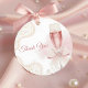 Ajoutez une touche finale charmante à vos faveurs de bapteme de mariage avec cette étiquette ronde Perles & Prosecco. Avec un verre à champagne à l'aquarelle, des guirlandes de perles et des accents de scintillement dorés, cette étiquette de faveur élégante complète votre thème de brunch de mariage moderne ou de shower de mariage de manière magnifique.