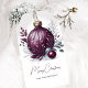 Marque cadeau de Noël - Le design présente une aquarelle illustrant un bauble violet festif botanique décoratif. Ajoutez simplement votre nom.