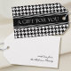 Élevez votre don de cadeaux et ajoutez une touche d'élégance avec ce design de marque-page cadeau élégant. Un modèle chic avec le motif pied-de-poule iconique, associé à des rayures contrastées et une typographie classique. Personnalisez-le en ajoutant un nom de famille ou un message personnalisé de votre choix. Ce design est parfait pour les cadeaux de remerciement, la célébration d'anniversaires, d'anniversaires de mariage, de fêtes, de cadeaux de pendaison de crémaillère, et bien plus encore ! Couleurs imprimées : noir et blanc.