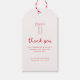 Elegant Pink Script Coquette Bow Bachelorette Thank You Gift Tags. Personalize this minimalistic and modern, pink/red and white bachelorette thank you favor tag with your custom thank you message, bride's name, and bachelorette date(s).