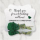 Ces belles étiquettes de faveur sont une façon merveilleuse de remercier les membres de votre fête de mariage, les invités spéciaux, ou les membres de votre famille. Le design élégant présente une belle photo d'un seul rose vert émeraude à long tige réfléchissant dans un bassin d'eau. La calligraphie de script fantaisie dit "Merci pour célébrer avec nous !" avec espace pour vos noms/signature ci-dessous.