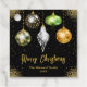 Add a bold and stylish touch to your Christmas party favors with this unique tag featuring five hanging ornaments in tropical and animal print designs. Leopard, zebra, honeycomb, and lush green leaf patterns shimmer against a black background sprinkled with golden stars. Personalize with your family name and year to create a memorable accent for treat bags, table settings, or holiday gifts. Ideal for modern, fashion-forward celebrations.