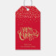 Étiquettes-cadeau Élégant script or & Confetti Red Christmas