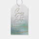 Awash Elegant Watercolor Texture in Ocean colorway of Aqua Turquoise Blue Green, and faux Gold Foil à la main accents. Elégant Mariage Enregistrer la Date Cadeau Tags Avec jolie Calligraphie Signature Script police et votre photo personnalisée sur le côté arrière! ~ Regardez ma boutique pour voir l'ensemble de la suite mariage pour ce design!