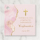 Une élégante agate rose et or décorent ce joli banquet de confirmation personnalisé en faveur d'une cérémonie chrétienne de fille. Personnaliser avec un nom sous la belle croix pour un accessoire de fête religieuse chic.