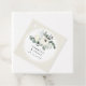 Le design présente des fleurs d'ivoire aquarelle avec de la verdure avec une bordure crème.
