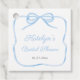 Cette élégante marque de faveur est dotée d'une bordure en ruban aquarelle peinte à la main en bleu clair. Montré ici pour une douche nuptiale mais bien sûr le texte pourrait être customisé à n'importe quel événement.