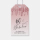 Elégant et chic personnalisé 60e anniversaire fête merci étiquettes cadeaux. "60 & Fabulous" et "merci" sont écrits avec un script de calligraphie stylisé sur un arrière - plan sombre rose, avec une fausse parties scintillant en or rose et rose qui coule du haut.