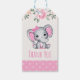 Étiquettes-cadeau Eléphant rose mignonne et Merci frontalier Rose