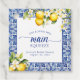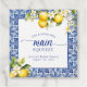Cette invitation de fête de mariage présente un thème bleu vif avec des agrumes.
