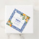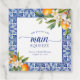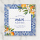 Cette invitation de mariage présente un thème bleu vif avec des agrumes.