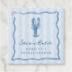 Nos étiquettes de faveur de douche de mariage au homard ensoleillé sont parfaites pour votre célébration en bord de mer ! Le design fantaisiste côtier présente des lettrages et des illustrations bleus méditerranéens ensoleillés sur un fond rayé cabane bleu pâle. Un gribouillage de homard dessiné à la main est assis au-dessus de deux lignes de texte personnalisé, le tout encadré par une bordure gribouillée en coquille ondulée. Affiché avec "elle est un bon parti" et le nom de la future mariée.