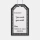 En vichy-Blanc-Noir-CUSTOM HANG OU CADEAU MODÈLE 1-Minuscule, minuscule, carrés composent cet arrière - plan motif de en vichy noir et blanc. Les motifs en vichy sont disponibles en assortiment de couleurs arrière - plans. De la campagne rustique et en vichy de prime à la douce pastel bébé comme des couleurs, plusieurs styles sont disponibles. Coordonner Zazzle fournitures de fête et des cadeaux sont disponibles. L'avant de cette balise pendante a un insert blanc centre entouré du motif en vichy et une double jante. Derrière, il y a un arrière - plan noir solide. Le côté arrière de l'étiquette cadeau est noir et blanc en vichy partout. Quatre (4) zones de texte sont en place pour vous permettre de personnaliser. Modifiez chaque zone de texte pour dire ce que vous voulez. Supprimez ou effacez les zones de texte que vous ne souhaitez pas. Pour une balise vide, effacez toutes les zones de texte.