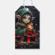 Étiquettes-cadeau Enfant Elfe mignon en manteau à capuchon vert