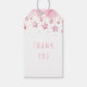 étoiles roses merci étiquette cadeau. Des étoiles accrochées à des nuages lustrés et roses clairs.