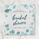 Cette étiquette de faveur présente des feuilles d'eucalyptus avec les mots "bridal shower" dans un script tendance, le tout sur un fond en marbre pâle sur l'avant et un dos de couleur vert sarcelle foncé.