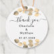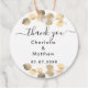 Décoré de sprigs d'eucalyptus dorés. Avec le texte : Merci, écrit avec un script de style moderne écrit à la main avec des swashes. Personnalisez et ajoutez vos noms et la date du mariage.