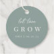 Les étiquettes de faveur élégantes basées sur la typographie comportent "laissez pousser l'amour" en écriture manuscrite et en écriture serif classique. Parfait pour les plantes, les semences ou les faveurs succulentes pour les mariages ou les douches nuptiales. Couleur : Eucalyptus, vert sauge pâle.