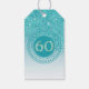 Étiquettes-cadeau Falling Turquoise Blue Parties scintillant 60e ann