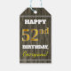 Étiquettes-cadeau Faux Wood, Faux Gold 52e anniversaire + Nom person