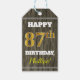 Étiquettes-cadeau Faux Wood, Faux Gold 87e anniversaire + Nom person