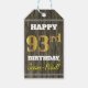 Étiquettes-cadeau Faux Wood, Faux Gold 93e anniversaire + Nom person
