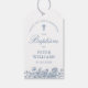 Voici nos étiquettes cadeaux pour baptême croix florale vintage bleue, conçues pour ajouter une touche d'élégance et de personnalisation au jour spécial de votre enfant. Ces étiquettes présentent de délicates fleurs inspirées de la Toile de Jouy dans un bleu poussiéreux doux, dégageant un charme vintage et une sophistication certaine. Une croix bleue centrale symbolise la foi et la grâce, complétée par une typographie sérif et script classique pour une touche raffinée. Idéales pour les baptêmes, les christeminings ou les dédicaces de bébé, ces étiquettes cadeaux allient parfaitement tradition et élégance moderne. Personnalisez-les avec le nom de votre enfant et la date de l'événement pour créer des souvenirs mémorables pour vos invités.
