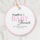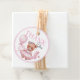 Des étiquettes-cadeaux baby showers ornées d'une adorable aquarelle illustrant un ours en peluche dans une robe rose mignonne.