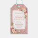 Étiquette de Cadeau de Fête de Mariage Floral Paillettes Or Rose.