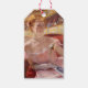 Étiquettes-cadeau Femme américaine avec collier perle et robe rose