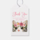 Étiquettes de cadeau d'anniversaire de chat mignon avec un script rose fantaisiste et un chat aquarelle peint avec des fleurs roses et mauves près du bas du design. Personnalisez les étiquettes de cadeau de fête d'anniversaire sur le thème du chat avec le nom de la fille qui fête son anniversaire et un message personnalisé. Le dos de l'étiquette de cadeau présente un design à points rose et blanc.