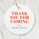 Un merci d'être venu tag de faveur idéal pour une fête d'anniversaire avec un texte facile à modifier et un charmant lion illustré dans un casquette de fête sur un arrière - plan jaune.