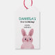 Étiquette de faveur de fête d'anniversaire avec un bébé lapin rose avec des lunettes. Thème de lapin mignon pour l'anniversaire d'une fille. VOUS POUVEZ ENLEVER LES LUNETTES ! Dos avec motif à carreaux.