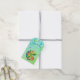Ces étiquettes-cadeaux ont un lézard imaginaire aux couleurs vives tenant une branche avec une feuille, avec des ballons de fête verts et bleus sur un arrière - plan mixte bleu vert. Customisez votre texte à l'avant et à l'arrière avec les modèles.