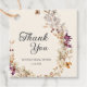 Remerciez vos invités avec ces élégantes étiquettes de faveur de fête de mariage bohème florale sauvage d'automne. Avec de belles fleurs sauvages de tons terre, des papillons et un fond en jaune moutarde, terre cuite, rose, violet et vert. Tout le texte peut être modifié.