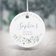 Couronne de fleurs sauvages à l'aquarelle délicate et élégante encadrant les détails de votre événement. Palettes pastel de jaune doux, blanc cassé, vert sauge, bleu poussiéreux et verdure botanique, simples et romantiques. Grands marque-pages pour cadeaux de baby shower rustique moderne, baby shower country garden, et fête bohème bleu poussiéreux au printemps et en été.