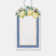Demandez à vos invités de participer à une corbeille à souhaits de vin avec l'étiquette de cadeau au thème Lemon. Elle est bordée de carreaux bleus méditerranéens et d'un mince cadre doré. Des citrons et des fleurs blanches nichés dans des feuilles vertes ornent le dessus. Tout le texte est modifiable.