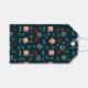 Des poinsettias rouges, des baies blanches de mistletoe, des bougies bleues et blanches, des cadeaux rayés rouges et blancs, des flocons de neige et des étoiles sur un arrière - plan foncé, contrastant crée un tag cadeau mignon et amusant qui est parfait pour vos cadeaux de vacances.
