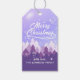 Étiquettes-cadeau Fête de Noël de la forêt paisible de neige violett