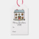 Étiquettes de cadeaux assorties pour les faveurs de fête de Noël. Conception avec une maison de style gribouillé dessinée à la main festive et minimaliste avec une couronne sur une porte d'entrée rouge et de petits arbres. Modèle entièrement modifiable.