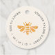 Ajoutez une touche de finition douce à vos faveurs avec cette étiquette ronde sur le thème de l'abeille nuptiale, avec une abeille jaune doré et un texte personnalisable dans un élégant lettrage serif. Idéal pour les douches nuptiales rustiques, de jardin ou de printemps.