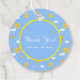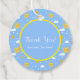 Dites "Merci !" avec ces étiquettes de faveur personnalisées. Décorez vos sacs de cadeaux ou vos faveurs de fête avec ces mignonettes bleu et jaune soleil rond merci étiquettes cadeaux qui présentent un soleil jaune souriant peint à la main et un arrière - plan motif bleu ciel nuageux. Ces étiquettes de faveur sont parfaites pour personnaliser toutes sortes de faveurs et cadeaux de fête!