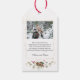 Étiquette de remerciement de mariage de Noël Cette conception présente une composition de Noël de Poinsettia, de feuilles vertes et dorées, de pommes de pin, de guirlande lumineuse et de baies rouges sur fond vert foncé. Ajoutez votre photo et votre texte.