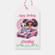 Étiquettes-cadeau Fille afro-américaine avec chat en Corvette rose