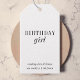 Une simple étiquette cadeau "fille d'anniversaire" avec un mélange de typographie classique et moderne dans un style minimaliste en noir et blanc.