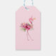 Un joli flamant rose exotique avec couronne et fleurs sur arrière - plan rose clair
