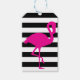 Étiquettes-cadeau Flamant rose rose rayé noir et blanc
