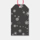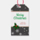 Festif et moderne personnalisable marque cadeau de Noël. Personnalisez la balise avec votre texte et votre nom. Le texte Joyeux Noël est dans un script vert tendance. La baie des arbres de Noël rend ce design festif. De beaux flocons blancs sont sur un arrière - plan gris. Souhaitez des vacances heureuses avec ce tag élégant à vos amis et votre famille.